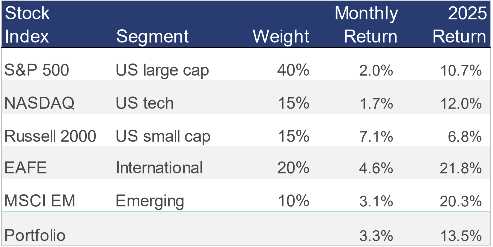 Overall, our traditional 60/40 portfolio gained 2% last month and is now up 9% so far this year, while the conservative 20/80 portfolio gained more than 1% last month and is now up more than 5% through the first eight months of 2025.